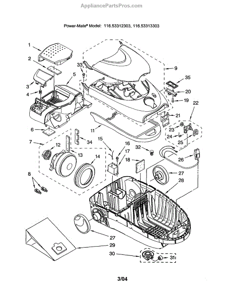 Parts for Kenmore 116.23313303 (11623313303, 116 23313303): Bag / Canopy / Motor Relay Parts