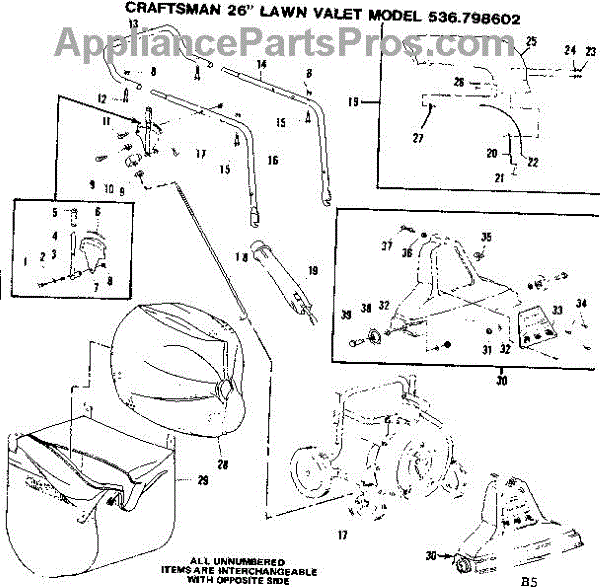 Parts for Craftsman 536798602: Bag And Hanle Assembly Parts