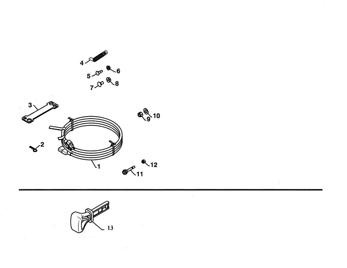 Retainer spring clip secures the mower deck to the chassis. Replace if broken, stretched, or missing to properly mount and stabilize the cutting deck.