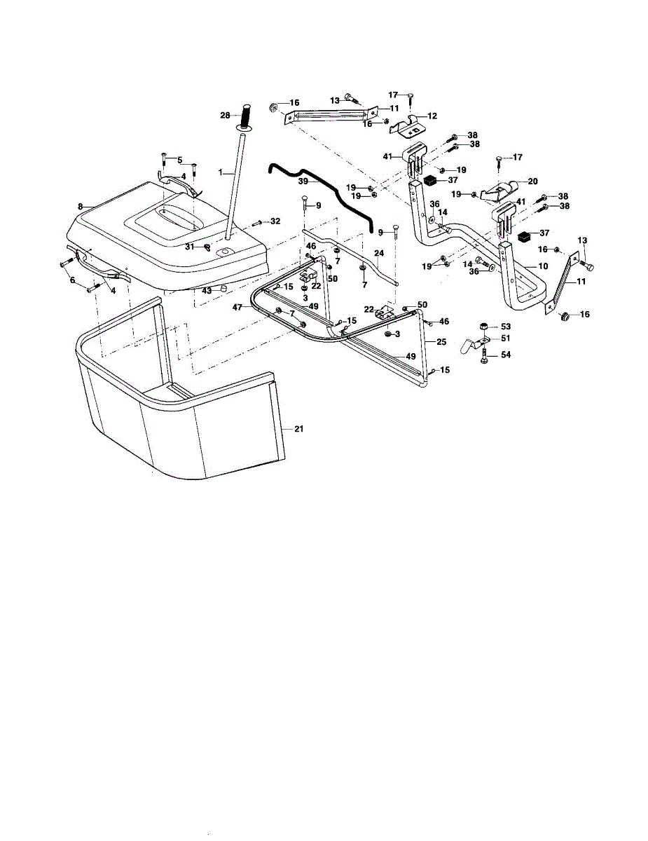 Bagger handle assembly for lawn tractors and riding mowers. Replace if your current handle is cracked, broken, or missing to restore full bagger operation.