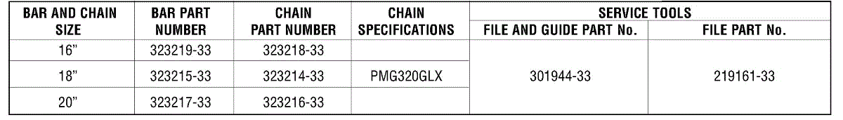 Parts for Mcculloch 41AY06AQ077: Bar And Chain Information Parts
