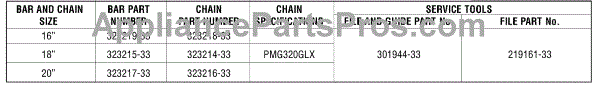 Parts for Mcculloch 41AY06AR077: Bar And Chain Information Parts