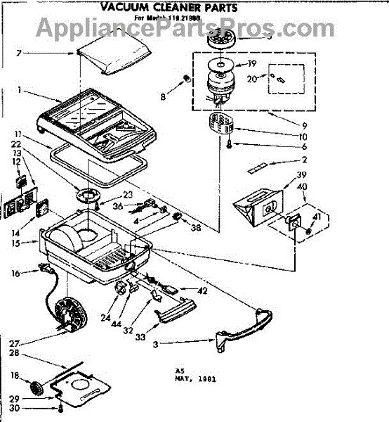 Parts for Kenmore 116.21980 (11621980, 116 21980): Base Assembly Parts