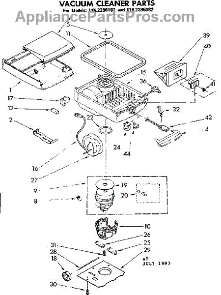 Parts for Kenmore 116.2296182 (1162296182, 116 2296182): Base Assembly Parts