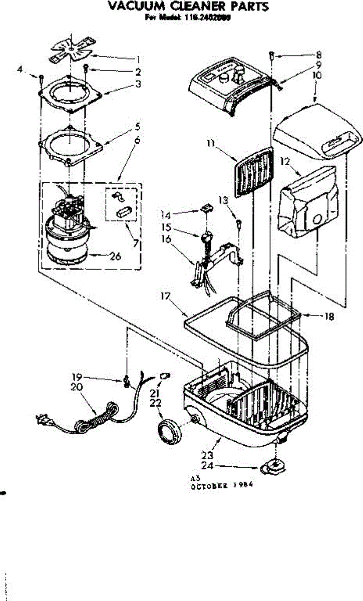Parts for Kenmore 116.2402080 (1162402080, 116 2402080): Base Assembly Parts