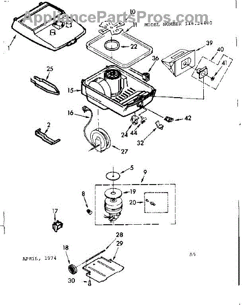 Parts for Kenmore 116.24400 (11624400, 116 24400): Base Assembly Parts