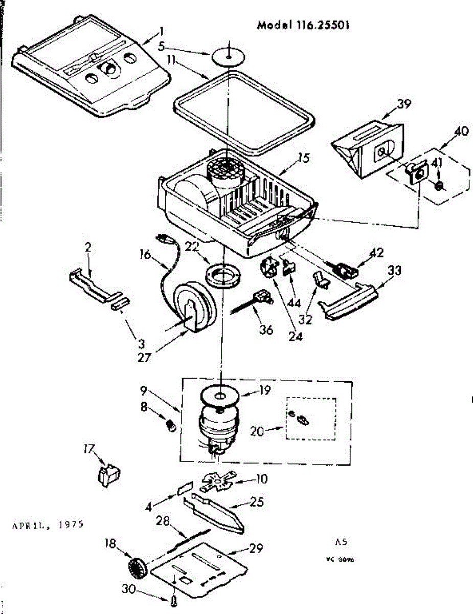 Parts for Kenmore 116.25501 (11625501, 116 25501): Base Assembly Parts