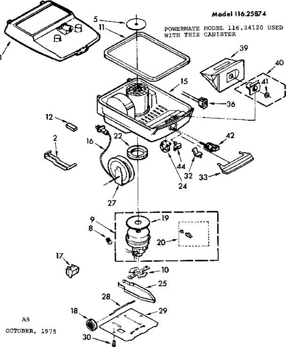 Parts for Kenmore 116.25874 (11625874, 116 25874): Base Assembly Parts