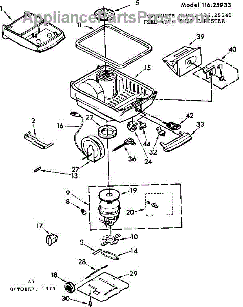 Parts for Kenmore 116.25933 (11625933, 116 25933): Base Assembly Parts