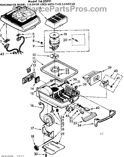 Parts for Kenmore 116.25991 (11625991, 116 25991): Base Assembly Parts