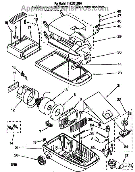 Parts for Kenmore 116.27512790 (11627512790, 116 27512790): Base Assembly Parts