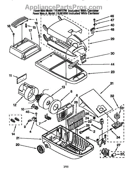 Parts for Kenmore 116.28612790 (11628612790, 116 28612790): Base Assembly Parts