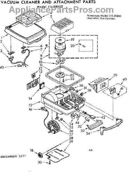 Parts for Kenmore 116.28982 (11628982, 116 28982): Base Assembly Parts