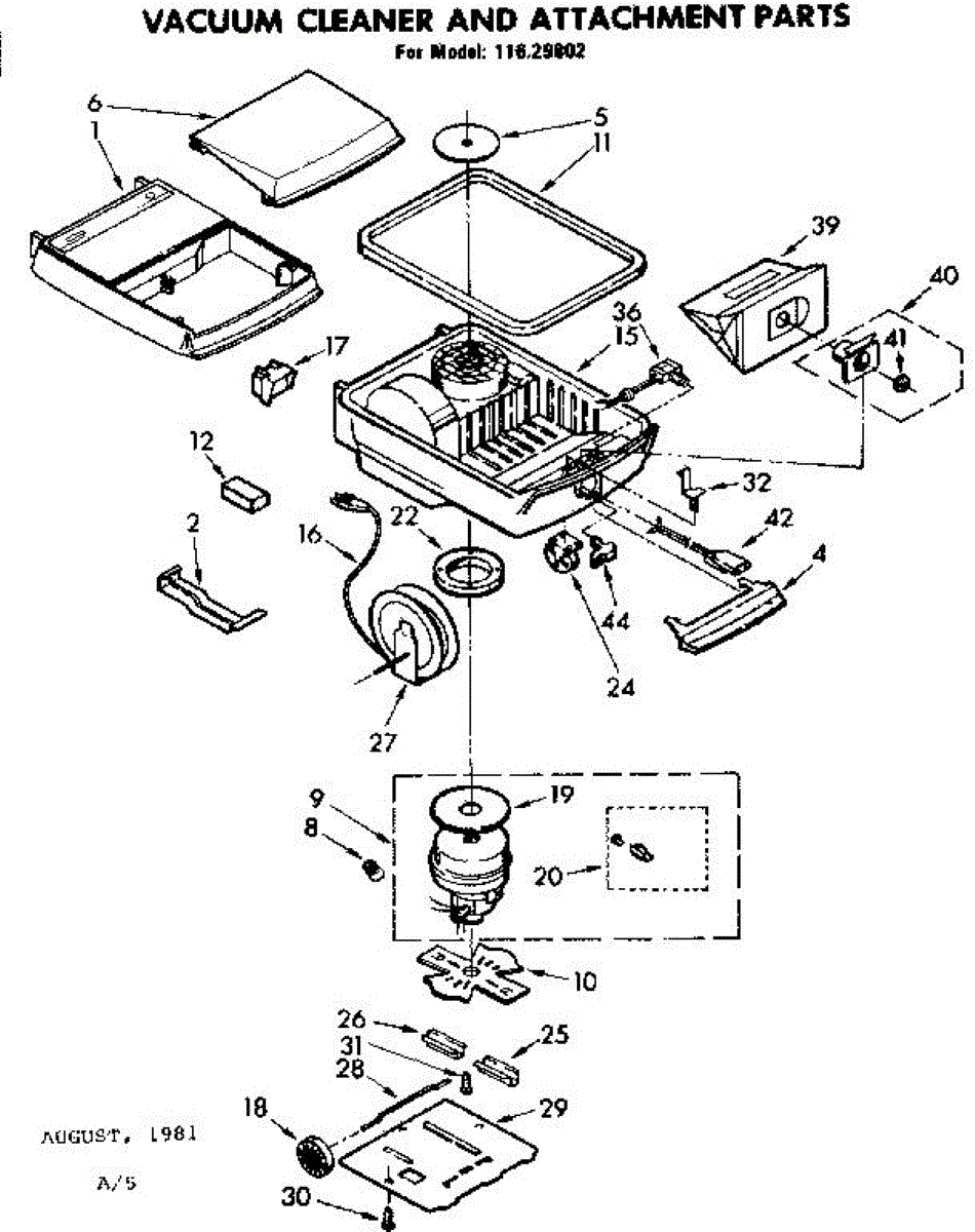 Parts for Kenmore 116.29802 (11629802, 116 29802): Base Assembly Parts