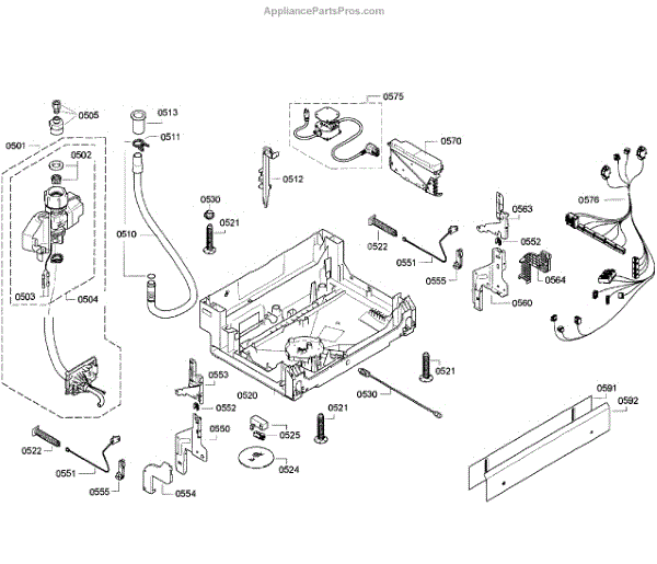 The Base Panel is an OEM replacement part for Bosch dishwashers. It serves as the protective front cover for the dishwasher's base, hiding the internal parts and providing a finished look to your appliance.