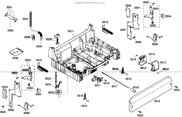 The Base Panel is an OEM part for Bosch dishwashers. It serves as a protective cover for the bottom of the dishwasher, shielding internal components from debris, moisture, and damage while also contributing to the appliance's structural stability.