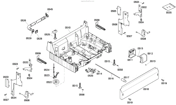The Base Panel is an OEM part for Bosch dishwashers. It serves as a protective cover for the bottom of the dishwasher, shielding internal components from debris, moisture, and damage while also contributing to the appliance's structural stability.