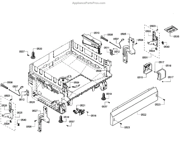 The Base Panel is an OEM part for Bosch dishwashers. It serves as a protective cover for the bottom of the dishwasher, shielding internal components from debris, moisture, and damage while also contributing to the appliance's structural stability.