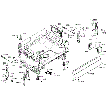 The Base Panel is an OEM part for Bosch dishwashers. It serves as a protective cover for the bottom of the dishwasher, shielding internal components from debris, moisture, and damage while also contributing to the appliance's structural stability.