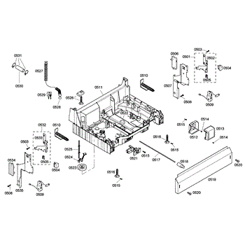 The Base Panel is an OEM part for Bosch dishwashers. It serves as a protective cover for the bottom of the dishwasher, shielding internal components from debris, moisture, and damage while also contributing to the appliance's structural stability.