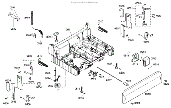 The Base Panel is an OEM part for Bosch dishwashers. It serves as a protective cover for the bottom of the dishwasher, shielding internal components from debris, moisture, and damage while also contributing to the appliance's structural stability.