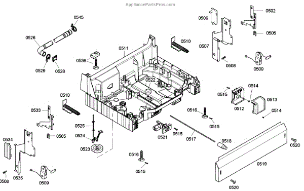 The Base Panel is an OEM part for Bosch dishwashers. It serves as a protective cover for the bottom of the dishwasher, shielding internal components from debris, moisture, and damage while also contributing to the appliance's structural stability.