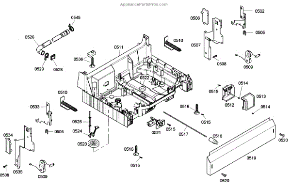 The Base Panel is an OEM part for Bosch dishwashers. It serves as a protective cover for the bottom of the dishwasher, shielding internal components from debris, moisture, and damage while also contributing to the appliance's structural stability.