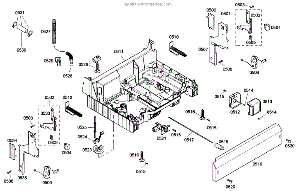 The Base Panel is an OEM part for Bosch dishwashers. It serves as a protective cover for the bottom of the dishwasher, shielding internal components from debris, moisture, and damage while also contributing to the appliance's structural stability.