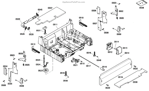 The Junction Box Cover is an OEM part for Bosch dishwashers. Located at the rear of the appliance, the junction box houses connections to the power supply and control board wiring. The junction box cover protects these internal electronic parts.