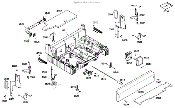 The Base Panel is an OEM part for Bosch dishwashers. It serves as a protective cover for the bottom of the dishwasher, shielding internal components from debris, moisture, and damage while also contributing to the appliance's structural stability.