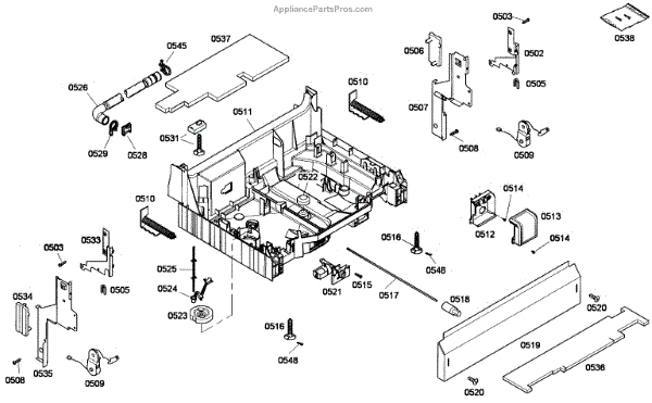 The Base Panel is an OEM part for Bosch dishwashers. It serves as a protective cover for the bottom of the dishwasher, shielding internal components from debris, moisture, and damage while also contributing to the appliance's structural stability.