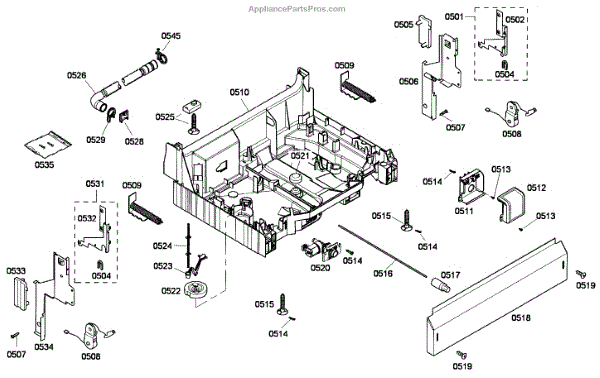 The Base Panel is an OEM part for Bosch dishwashers. It serves as a protective cover for the bottom of the dishwasher, shielding internal components from debris, moisture, and damage while also contributing to the appliance's structural stability.