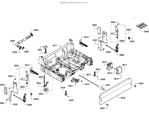 The Base Panel is an OEM part for Bosch dishwashers. It serves as a protective cover for the bottom of the dishwasher, shielding internal components from debris, moisture, and damage while also contributing to the appliance's structural stability.