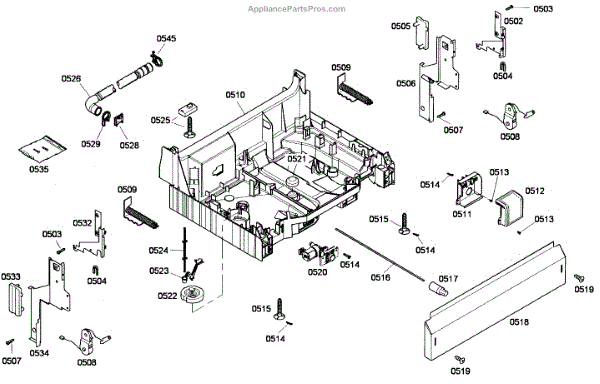 The Base Panel is an OEM part for Bosch dishwashers. It serves as a protective cover for the bottom of the dishwasher, shielding internal components from debris, moisture, and damage while also contributing to the appliance's structural stability.