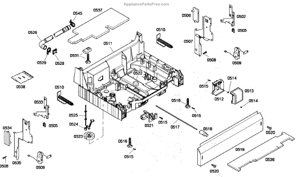 The Base Panel is an OEM part for Bosch dishwashers. It serves as a protective cover for the bottom of the dishwasher, shielding internal components from debris, moisture, and damage while also contributing to the appliance's structural stability.