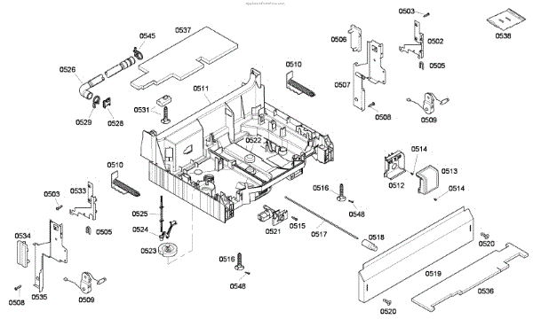 The Base Panel is an OEM part for Bosch dishwashers. It serves as a protective cover for the bottom of the dishwasher, shielding internal components from debris, moisture, and damage while also contributing to the appliance's structural stability.