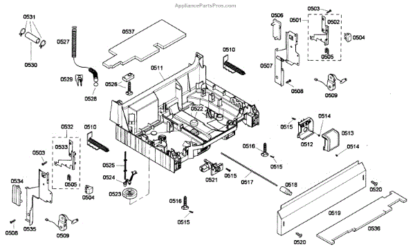 The Base Panel is an OEM part for Bosch dishwashers. It serves as a protective cover for the bottom of the dishwasher, shielding internal components from debris, moisture, and damage while also contributing to the appliance's structural stability.