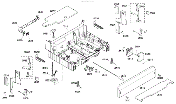The Base Panel is an OEM part for Bosch dishwashers. It serves as a protective cover for the bottom of the dishwasher, shielding internal components from debris, moisture, and damage while also contributing to the appliance's structural stability.