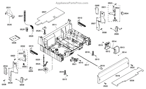 The Base Panel is an OEM part for Bosch dishwashers. It serves as a protective cover for the bottom of the dishwasher, shielding internal components from debris, moisture, and damage while also contributing to the appliance's structural stability.