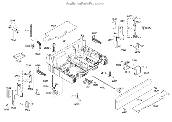The Base Panel is an OEM part for Bosch dishwashers. It serves as a protective cover for the bottom of the dishwasher, shielding internal components from debris, moisture, and damage while also contributing to the appliance's structural stability.