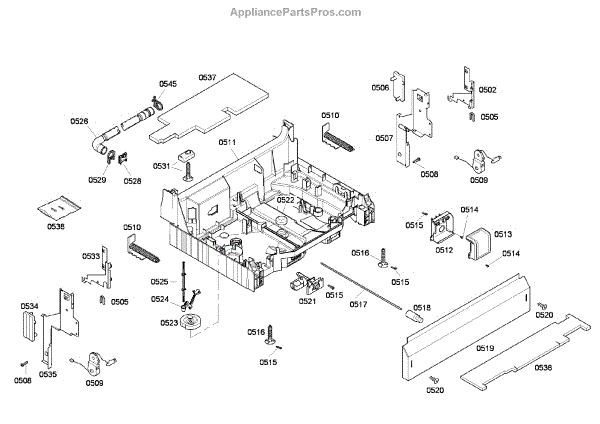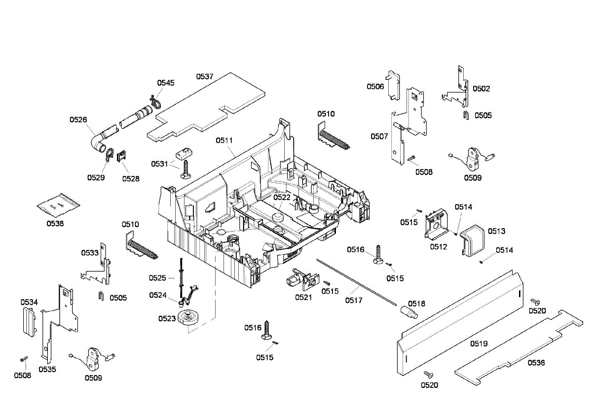 The Base Panel is an OEM part for Bosch dishwashers. It serves as a protective cover for the bottom of the dishwasher, shielding internal components from debris, moisture, and damage while also contributing to the appliance's structural stability.