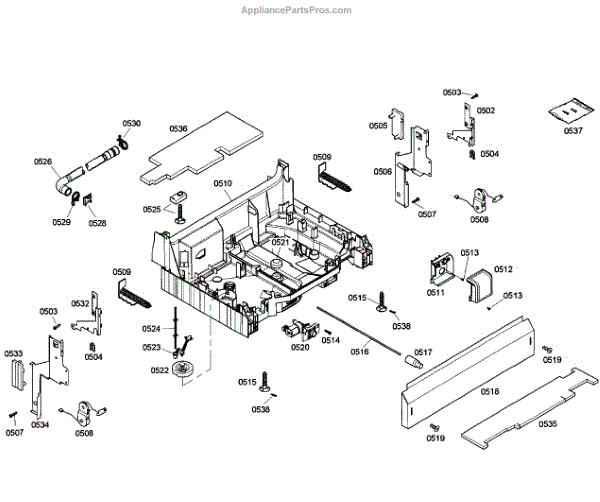 The Base Panel is an OEM part for Bosch dishwashers. It serves as a protective cover for the bottom of the dishwasher, shielding internal components from debris, moisture, and damage while also contributing to the appliance's structural stability.