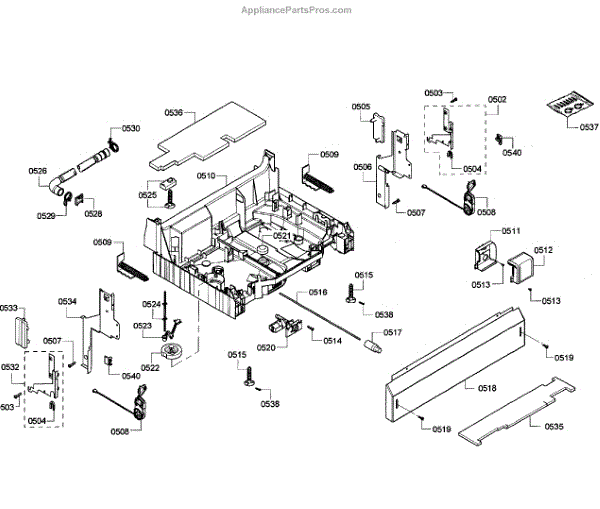 The Base Panel is an OEM part for Bosch dishwashers. It serves as a protective cover for the bottom of the dishwasher, shielding internal components from debris, moisture, and damage while also contributing to the appliance's structural stability.