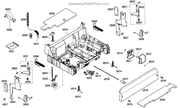 The Base Panel is an OEM part for Bosch dishwashers. It serves as a protective cover for the bottom of the dishwasher, shielding internal components from debris, moisture, and damage while also contributing to the appliance's structural stability.