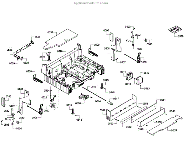 The Junction Box Cover is an OEM part for Bosch dishwashers. Located at the rear of the appliance, the junction box houses connections to the power supply and control board wiring. The junction box cover protects these internal electronic parts.