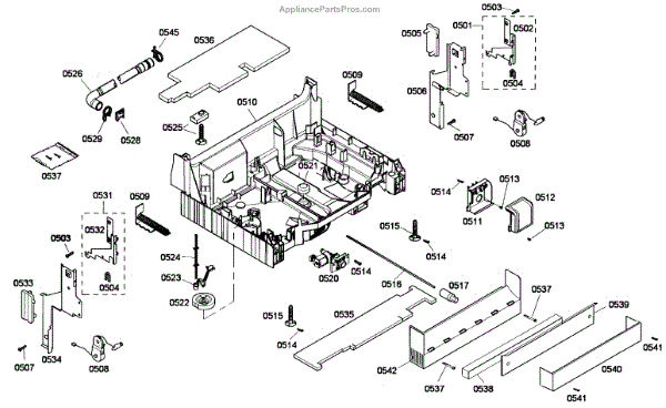 The Junction Box Cover is an OEM part for Bosch dishwashers. Located at the rear of the appliance, the junction box houses connections to the power supply and control board wiring. The junction box cover protects these internal electronic parts.