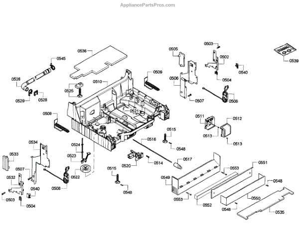 The Junction Box Cover is an OEM part for Bosch dishwashers. Located at the rear of the appliance, the junction box houses connections to the power supply and control board wiring. The junction box cover protects these internal electronic parts.