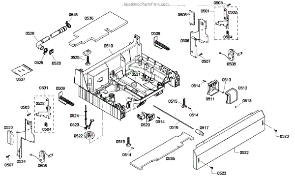 The Junction Box Cover is an OEM part for Bosch dishwashers. Located at the rear of the appliance, the junction box houses connections to the power supply and control board wiring. The junction box cover protects these internal electronic parts.