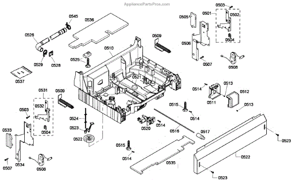 The Base Panel is an OEM part for Bosch dishwashers. It serves as a protective cover for the bottom of the dishwasher, shielding internal components from debris, moisture, and damage while also contributing to the appliance's structural stability.
