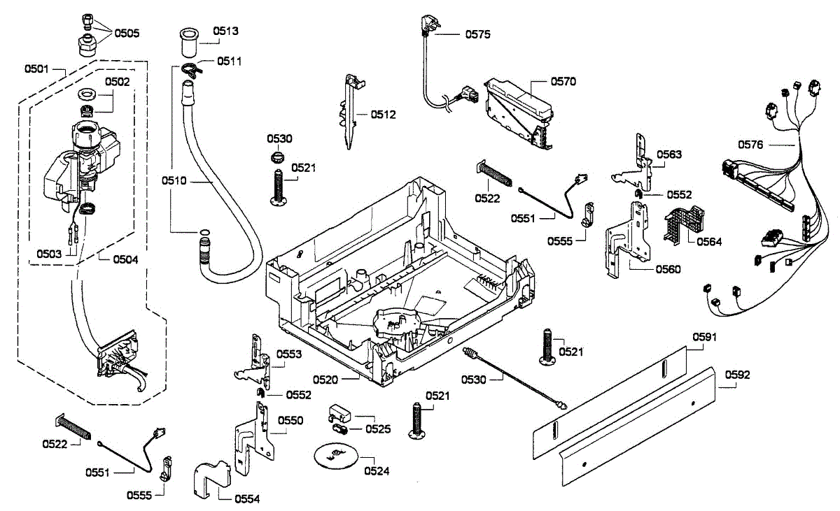 Dishwasher bottom case base assembly forms the lower enclosure protecting internal components. Replace if cracked, broken, or damaged to restore stability.